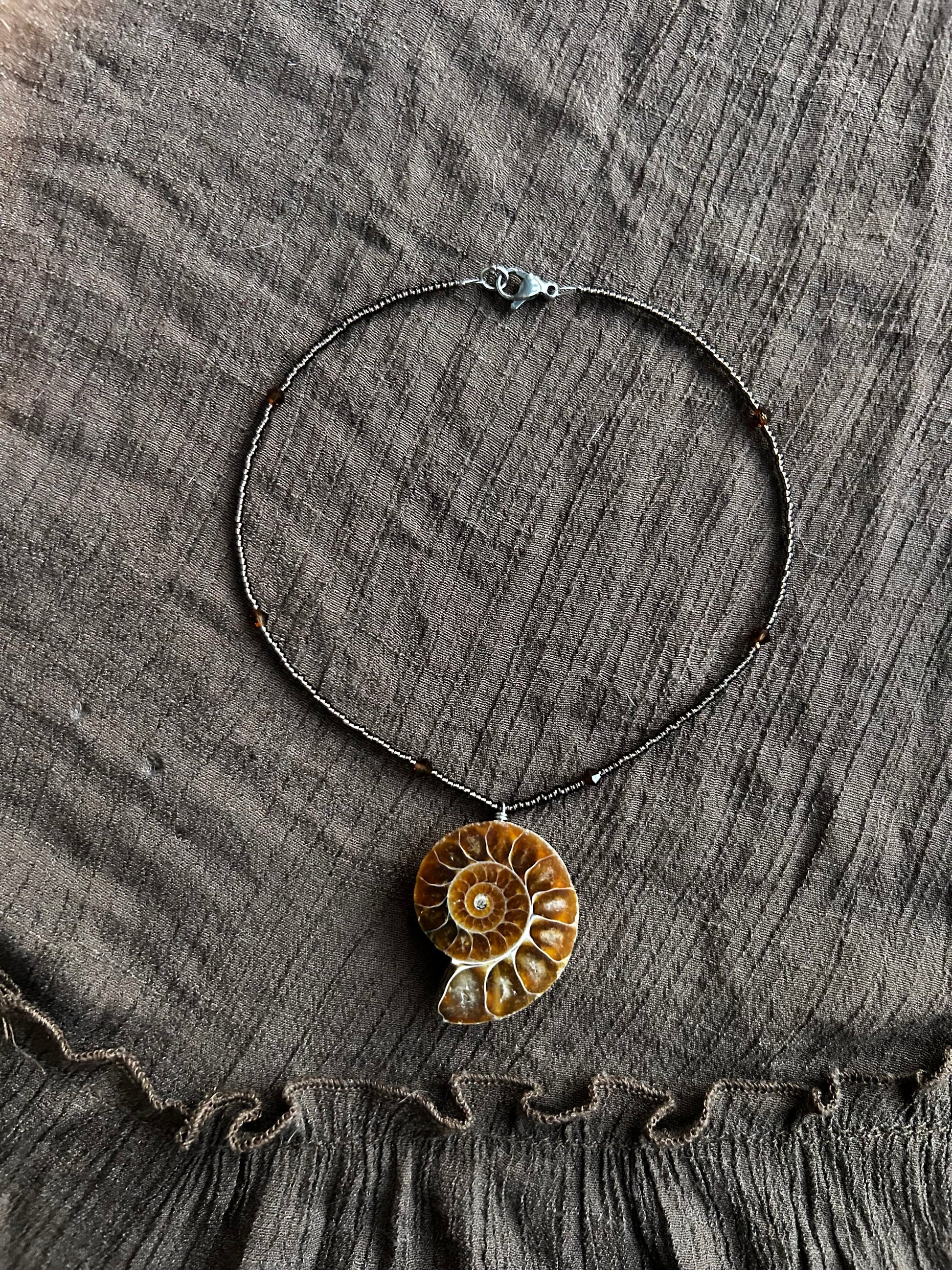 choker handmade by me with a genuine ammonite pendant check glass and stainless steel. 13.25”