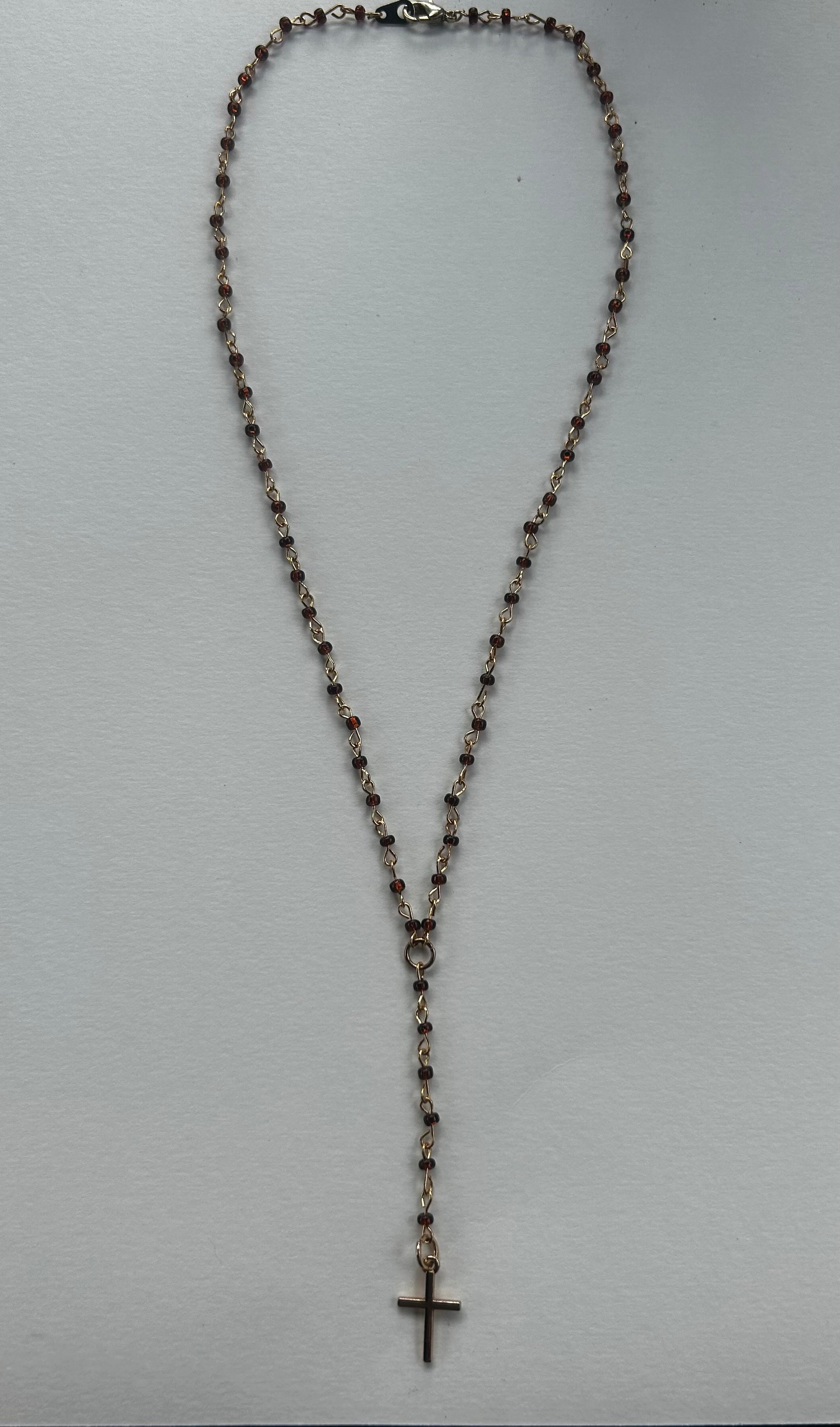 Necklace made with gold plated hardware and dark warm brown beads. 19.5”